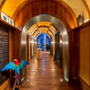 ด้วยการผสมผสานความหรูสง่างามแบบฝรั่งเศสกับความวิจิตรแบบไทย ประสบการณ์การเดินทางครั้งใหม่ได้เริ่มขึ้นแล้ว นับตั้งแต่ก้าวแรกผ่านโค้งประตูไม้ เผยให้เห็นการตกแต่งภายในที่ประณีตหรูหรา ประดับประดาด้วยโคมไฟเข้ากับหน้าต่างกระจกบานใหญ่สูงจากพื้นจรดเพดาน สัมผัสทิวทัศน์สวยอลังการสุดประทับใจ โดยทุกการตกแต่งในห้องอาหารแห่งนี้ล้วนเล่าเรื่องราวของนักเดินทางผู้รักการผจญภัย กล่าวขานผ่านปฏิมากรรมรูปหัววัวกระทิงที่ตั้งต้อนรับตระหง่าน หน้าปกหนังสือโบราณจากฝรั่งเศส เครื่องปั้นดินเผาชั้นดีจากญี่ปุ่น และลายเส้นอันพลิ้วไหวบนโถกระเบื้อง ก่อนจะนำเข้าสู่โถงบาร์หินอ่อนสีขาวบริเวณด้านใน ในขณะที่พื้นที่กลางแจ้งด้านนอกได้รับการเนรมิตให้เป็นบรรยากาศของป่าดงดิบ เต็มไปด้วยพืชพรรณนานาชนิด ให้ความรู้สึกราวกับป่าบนท้องฟ้า ซึ่งได้รับการออกแบบโดยทีมนักตกแต่งภายในระดับโลก Tristan Auer แห่ง Wilson Associates’ Paris Atelier ที่นำเสนอประสบการณ์ในการเดินทางออกจากเมืองใหญ่สู่โลกของการผจญภัยไม่รู้จบพร้อมต้อนรับชาวไทยและนักเดินทางจากทั่วทุกมุมโลก