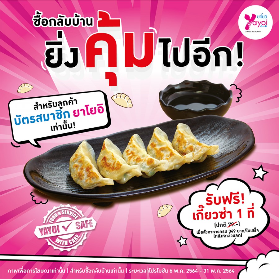 พิเศษ! ลูกค้าบัตรสมาชิกยาโยอิ รับฟรี! เกี๊ยวซ่า 1 ที่ ถึง 31 พ.ค.นี้