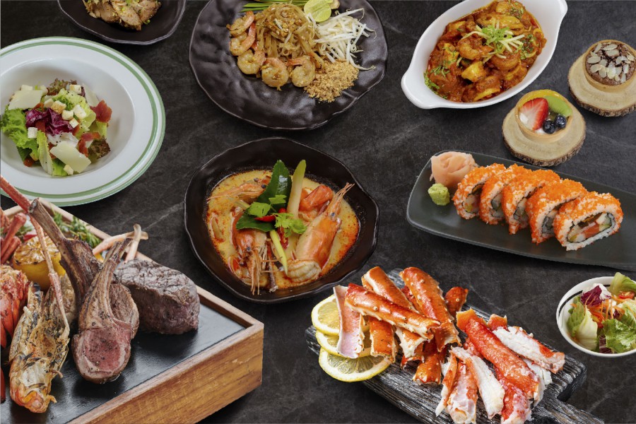 ทุกท่านสามารถเลือกเมนูต่างๆได้จากไลน์บุฟเฟ่ต์ สั่งเชฟปรุงร้อนสดใหม่ทุกจาน และพนักงานของเราบริการเสิร์ฟถึงโต๊ะ กับอาหารมากมายละลานตา และที่ขาดไม่ได้คืออาหารทะเลนานาชนิด ไม่ว่าจะเป็น ซีฟู้ดออนไอซ์ ซูชิ ซาซิมิ อาหารอินเดีย อาหารอิตาเลียน ชีส โคลคัท สเตชั่นปิ้งย่าง เนื้ออบสไตล์ตะวันตก ของหวานแสนอร่อยแบบนับไม่ถ้วน และอื่นๆอีกมากมาย